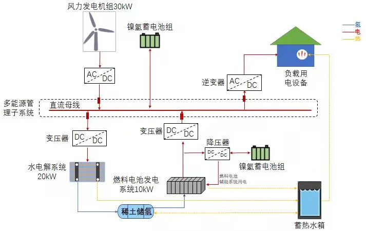 通過可再生能源儲能轉(zhuǎn)換系統(tǒng)技術(shù)集成與示范工程解決棄風、棄光限電的問題,提高系統(tǒng)的能量利用效率和運行穩(wěn)定性,實現(xiàn)風光能-氫能/儲能相結(jié)合的示范應(yīng)用,為根治“棄風棄光”頑疾探索一條新途徑。